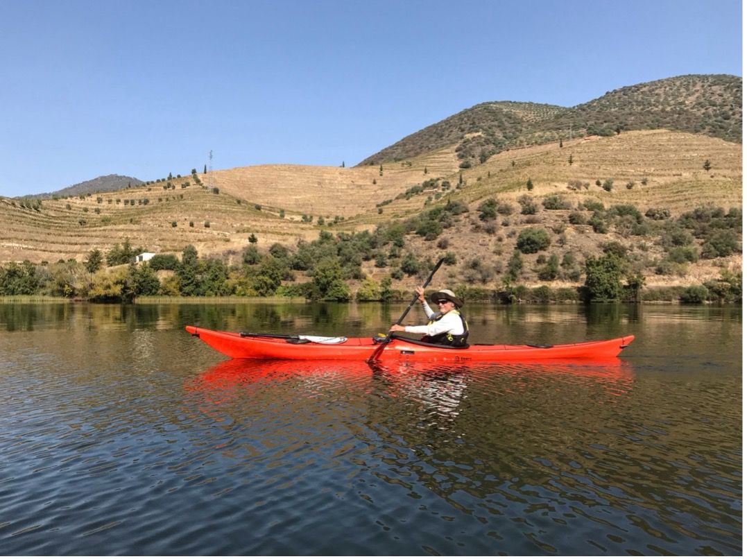 In October 2022 Thea Hoeth, Claire Pospisil, Blanche Town and I flew to Porto, Portugal for a 10 day excursion to paddle kayaks from east to west on the Douro River. The Douro River flows across the northern third of Portugal to the Atlantic Ocean. We began our trip on the Spain/Portugal border. Over the course of eight days we paddled our kayaks (and one standup paddleboard!) approximately 90 miles. Paddling gear, transportation and exquisite room and board was provided by our host guides at Douro Kayak Expeditions – Jack, Rui and Miguel. The trip included visits to three UNESCO World Heritage Sites along the Douro River Valley, the exclusive source of grapes used in making Port wines. Our group included 13 paddlers, 12 from the U.S. and one from the U.K., our on water guide Jack Atkinson, and land support crew of Rui Caledo and Miguel Carvalho. On the trip we locked through the Carrapatelo Dam Lock which is the largest vertical drop in Europe of approximately 115 feet. Daily paddles were between eight and 16 miles.