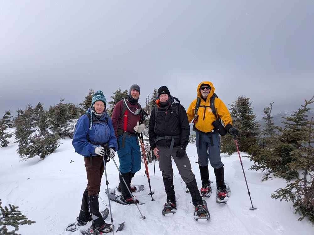 Right/bottom: Chapter snowshoe hike to Mt. Colden in December, 2025